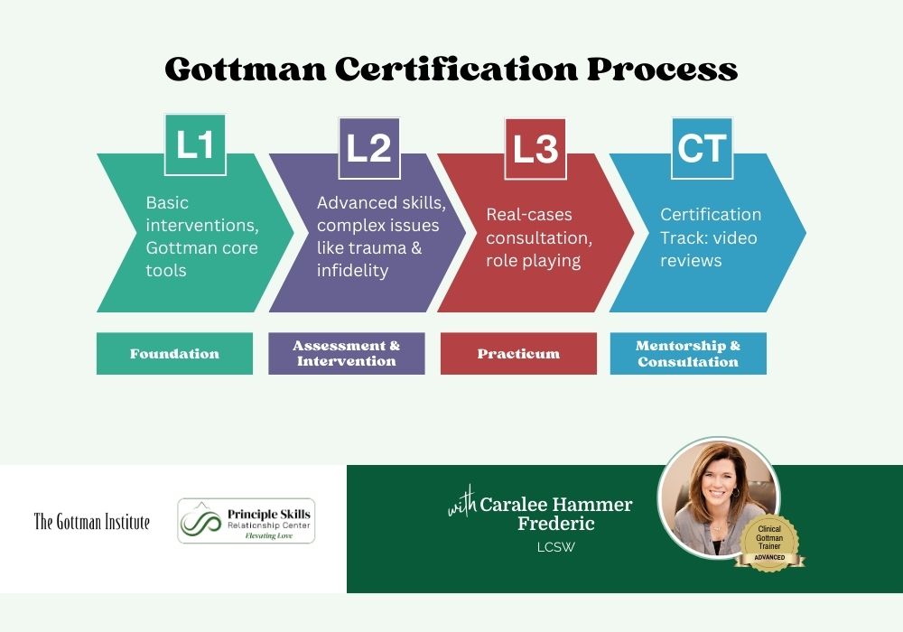 Advance your skills confidently through Gottman Method professional training — Levels 1, 2 & 3 — with Advanced Clinical Trainer & Supervisor, Caralee Hammer Frederic, LCSW.